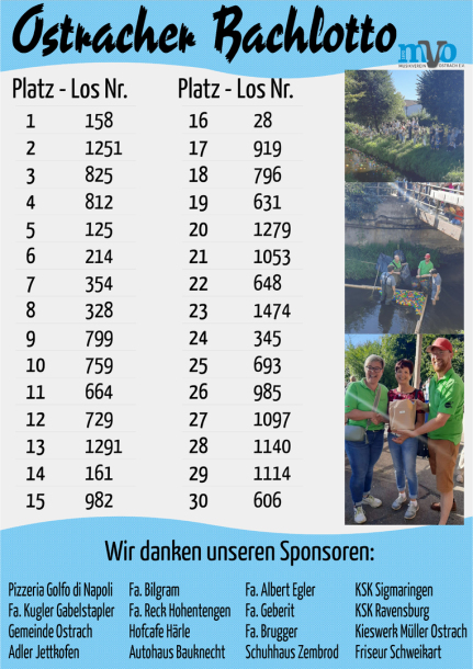 Wir danken allen Teilnehmern unseres diesjährigen Bachlottos am Ostracher Dorffest.